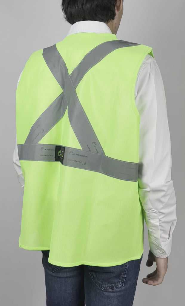 Chaleco color fosforescente con reflejante delantero y trasero. 100% poliéster.